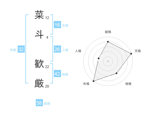 菜斗 歓厳さんの総格は58画の4点!