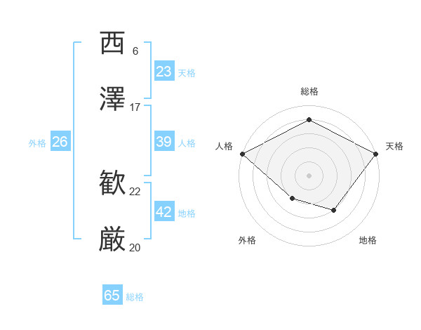 西澤 歓厳さんの総格は65画の4点!