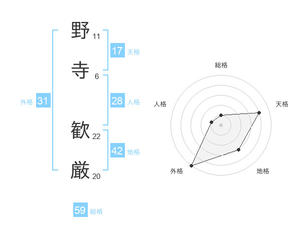 野寺 歓厳さんの総格は59画の1点!