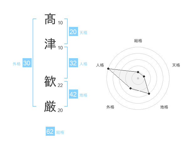髙津 歓厳さんを姓名の画数から五運を鑑定
