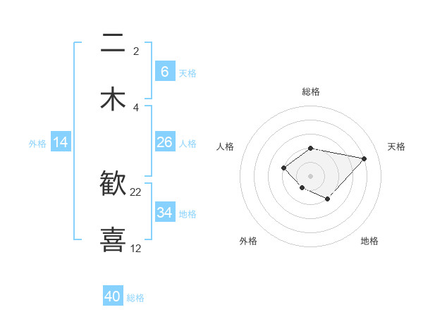 二木 歓喜さんを姓名の画数から五運を鑑定