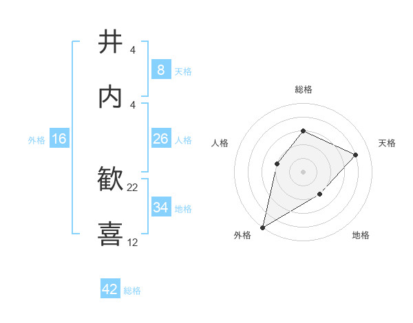 井内 歓喜さんの総格は42画の3点!