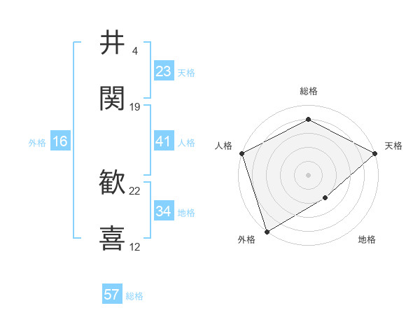 井関 歓喜さんの総格は57画の4点!