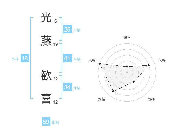 光藤 歓喜さんの総格は59画の1点!