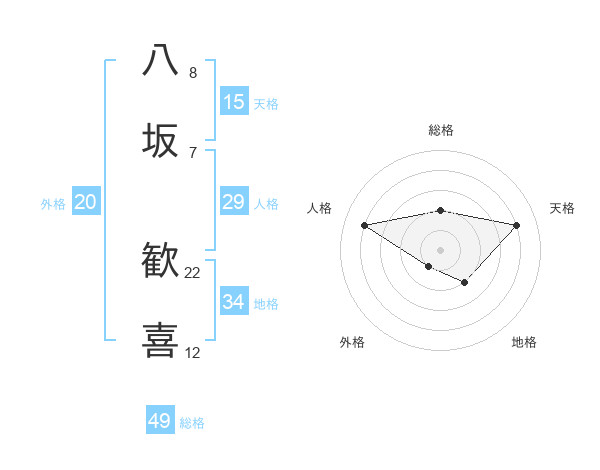 八坂 歓喜さんの総格は49画の2点!