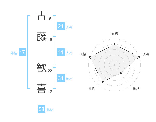 古藤 歓喜さんを姓名の画数から五運を鑑定