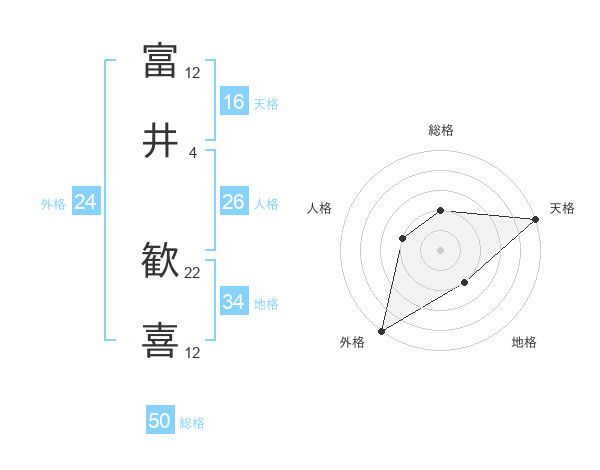 富井 歓喜さんを姓名の画数から五運を鑑定