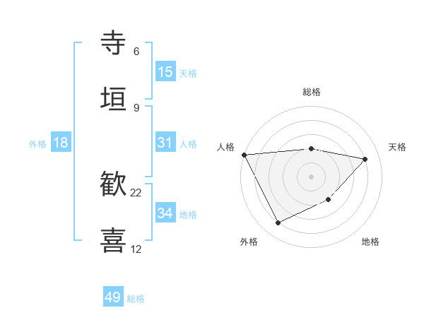 寺垣 歓喜さんを姓名の画数から五運を鑑定