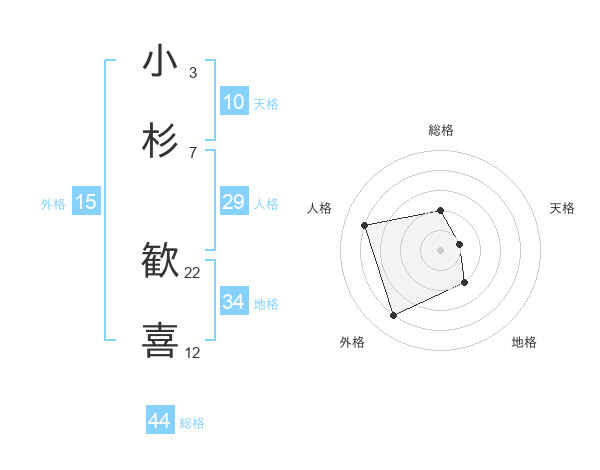 小杉 歓喜さんの総格は44画の2点!