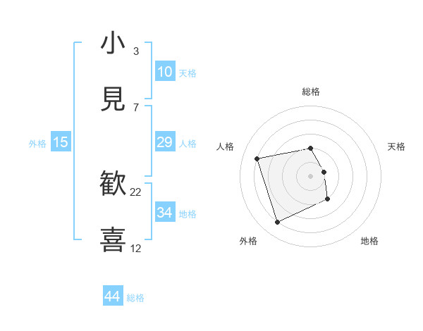 小見 歓喜さんの総格は44画の2点!