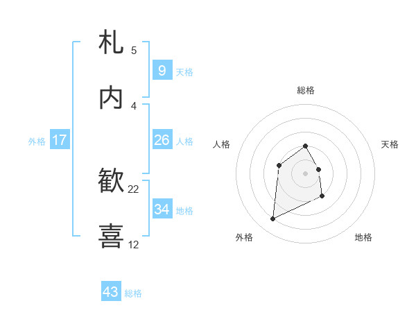 札内 歓喜さんを姓名の画数から五運を鑑定