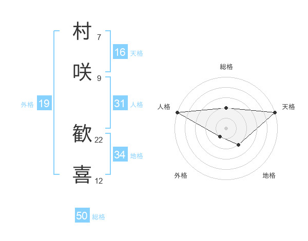 村咲 歓喜さんの総格は50画の2点!
