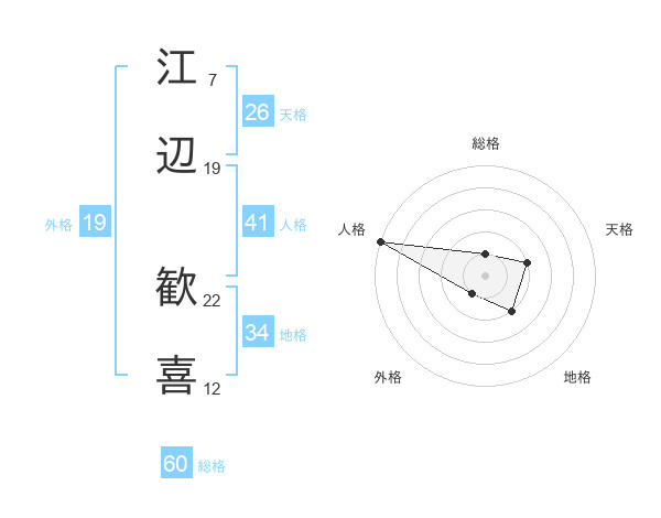 江辺 歓喜さんの総格は60画の1点!