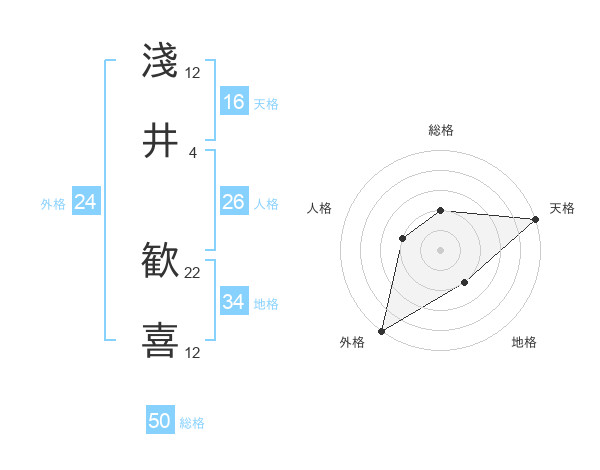 淺井 歓喜さんの総格は50画の2点!