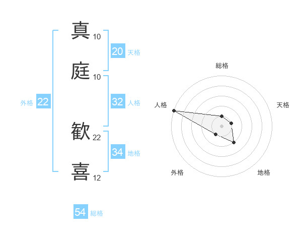 真庭 歓喜さんの総格は54画の1点!