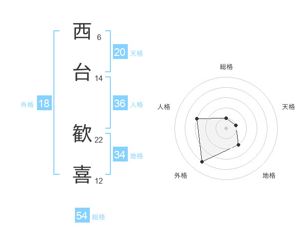 西台 歓喜さんを姓名の画数から五運を鑑定