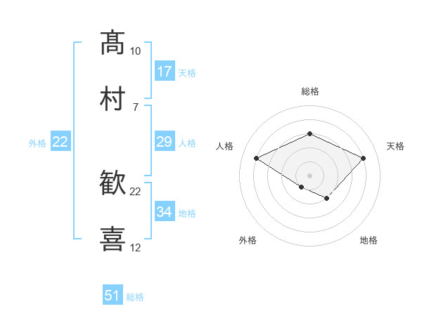 髙村 歓喜さんの総格は51画の3点!