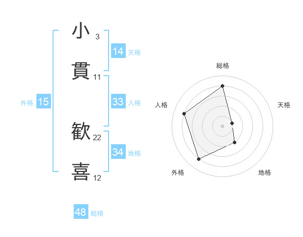 小貫 歓喜さんを姓名の画数から五運を鑑定