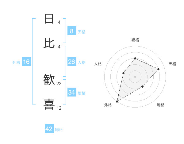 日比 歓喜さんを姓名の画数から五運を鑑定