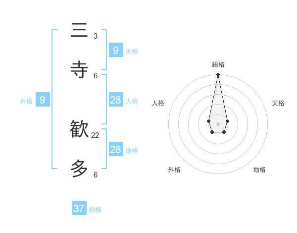 三寺 歓多さんの総格は37画の5点!