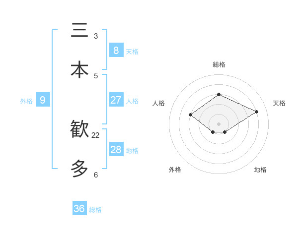 三本 歓多さんの総格は36画の3点!