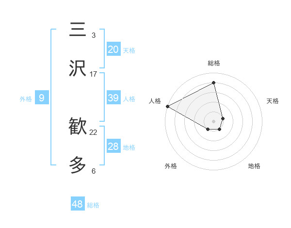 三沢 歓多さんの総格は48画の4点!