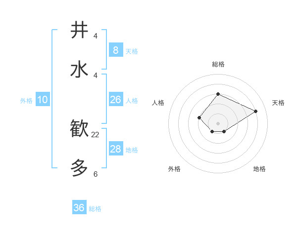 井水 歓多さんを姓名の画数から五運を鑑定