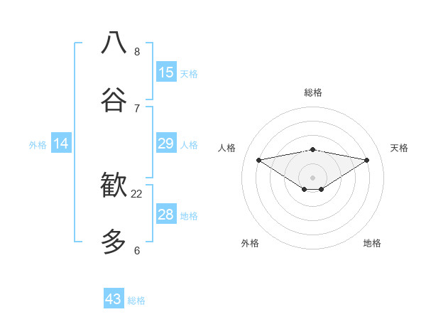 八谷 歓多さんを姓名の画数から五運を鑑定