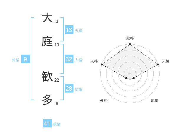 大庭 歓多さんの総格は41画の5点!