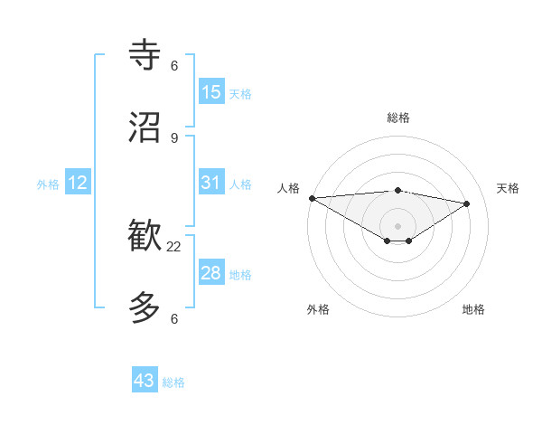 寺沼 歓多さんを姓名の画数から五運を鑑定