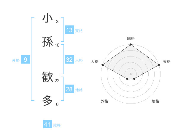 小孫 歓多さんを姓名の画数から五運を鑑定