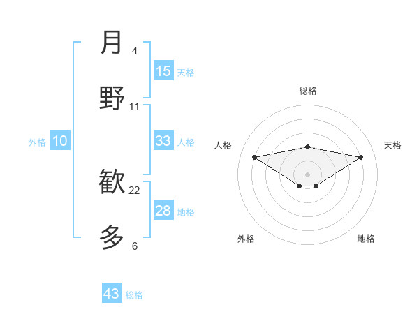 月野 歓多さんの総格は43画の2点!