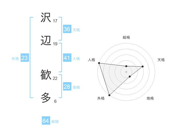 沢辺 歓多さんを姓名の画数から五運を鑑定