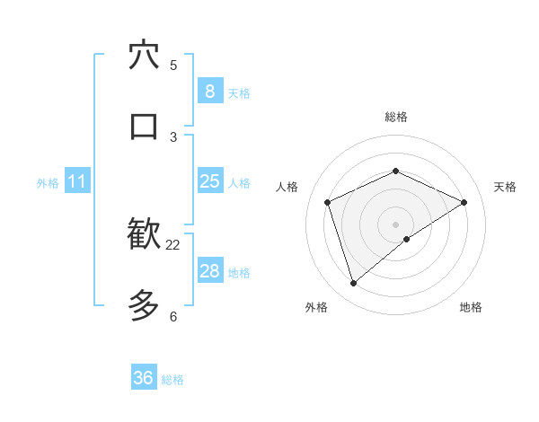 穴口 歓多さんの天格は8画の4点!