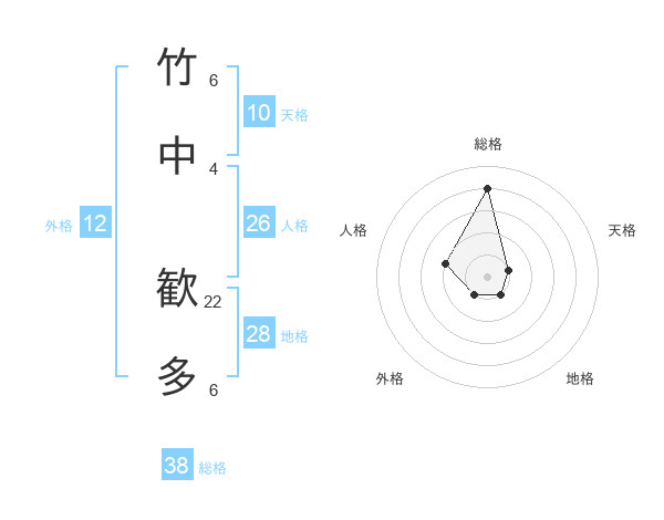 竹中 歓多さんの総格は38画の4点!