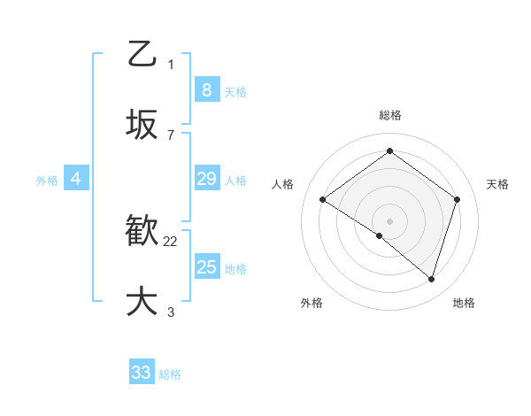乙坂 歓大さんを姓名の画数から五運を鑑定