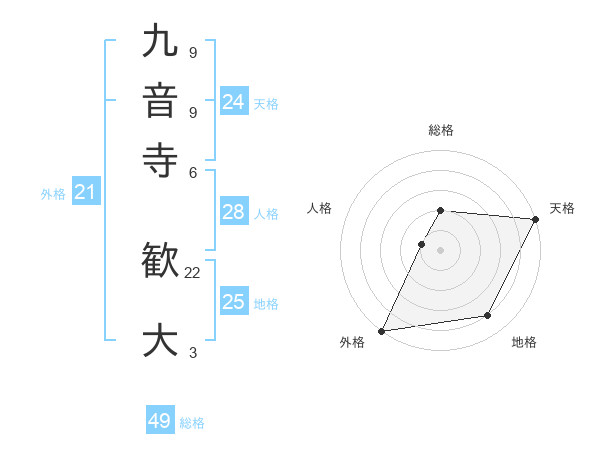 九音寺 歓大さんを姓名の画数から五運を鑑定