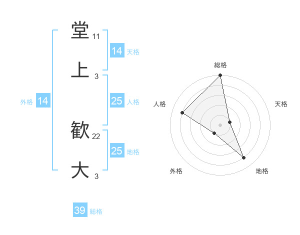 堂上 歓大さんを姓名の画数から五運を鑑定