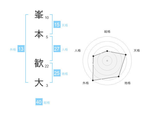 峯本 歓大さんを姓名の画数から五運を鑑定