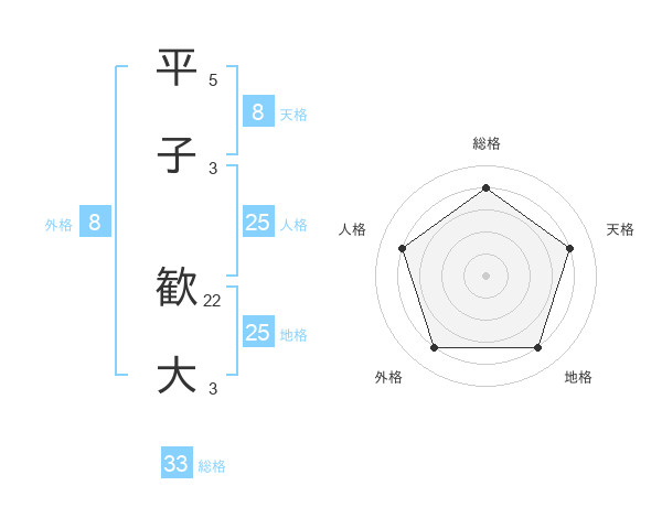 平子 歓大さんの地格は25画の4点!