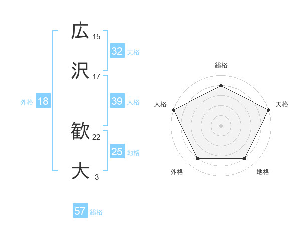 広沢 歓大さんを姓名の画数から五運を鑑定