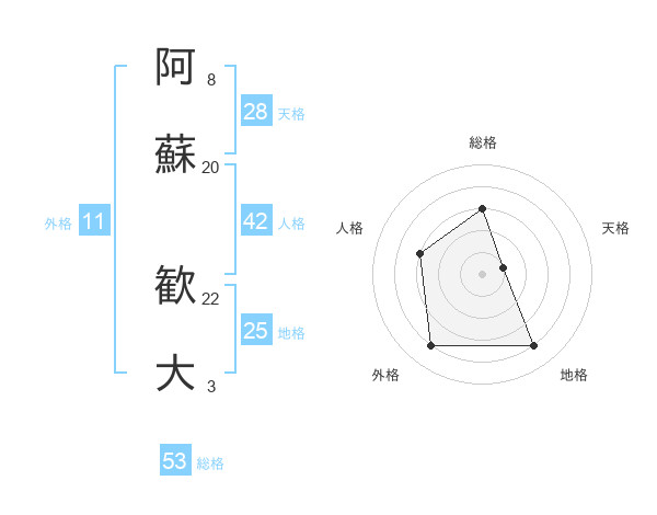 阿蘇 歓大さんの総格は53画の3点!