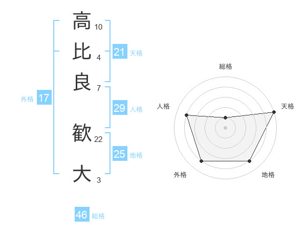 高比良 歓大さんを姓名の画数から五運を鑑定
