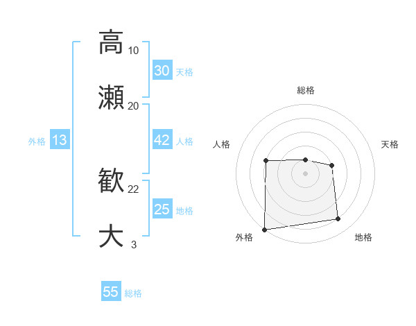 高瀬 歓大さんを姓名の画数から五運を鑑定