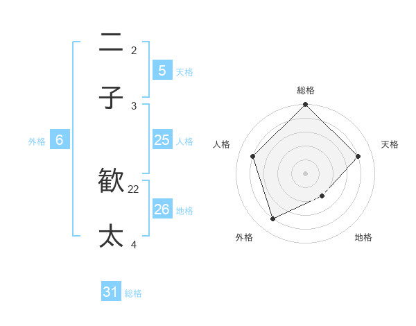 二子 歓太さんの総格は31画の5点!