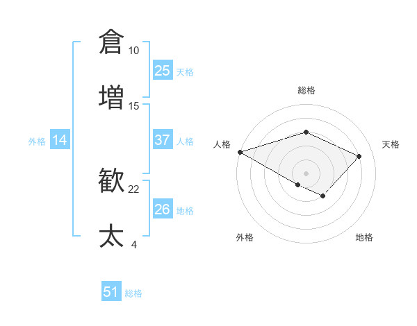 倉増 歓太さんを姓名の画数から五運を鑑定