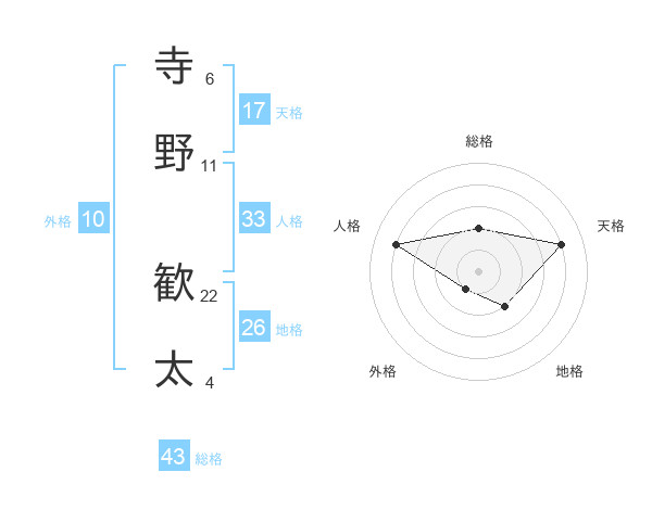寺野 歓太さんの天格は17画の4点!