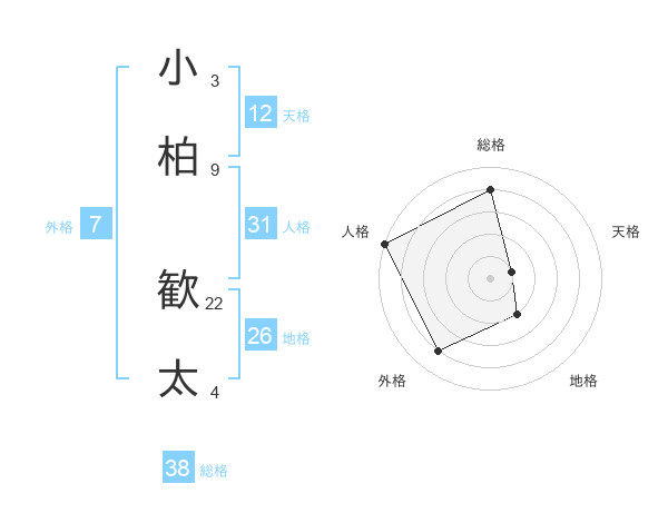 小柏 歓太さんの総格は38画の4点!