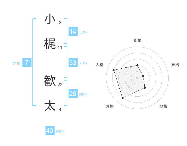 小梶 歓太さんを姓名の画数から五運を鑑定