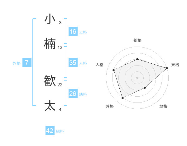 小楠 歓太さんを姓名の画数から五運を鑑定